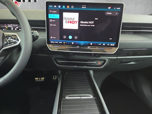 Telefonschnittstelle 'Comfort' mit induktiver Ladefunktion; 2 USB-C-Schnittstellen vorn, 2 USB-C-Ladebuchsen an der Mittelkonsole hinten; Ladeleistung bis zu 45 W; Soundsystem 'Harman Kardon', 12+1 Lautsprecher, 700 Watt Gesamtleistung, digitaler 16-Kanal-Verstärker, Subwoofer; Bluetooth; Radio; Digitaler Radioempfang DAB+; App-Connect Wireless für Apple CarPlay und Android Auto; Sprachassistent IDA