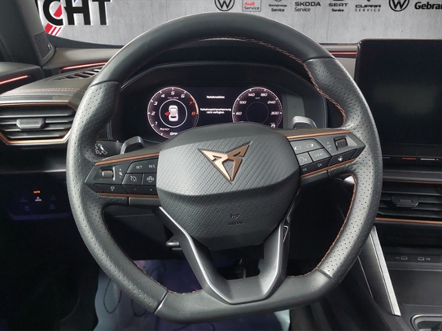 Elektron. Stabilitätskontrolle (ESC); ABS; ASR; Automatische Feststellbremse; Airbag FS und BFS, ohne Knieairbag, mit BFS-Deaktivierung; Seitenairbag vorn, mit Kopfairbag und Interaktionsairbag vorn; Differentialsperre (Vorderachse); Heckscheibenwischer; Außentemperatur-Anzeige; Sicherheitsinnenspiegel automatisch abblendbar; Servolenkung elektro-mechanisch; elektrische Parkbremse; Start/Stopp-Anlage mit Rekuperation (Bremsenergie-Rückgewinnung); Gurtstraffer; Adaptive Fahrwerksregelung mit kontinuierlicher Bedienung; Otto-Partikelfilter (OPF); 230V Wechselrichter und Steckdose für Europa; Fahrprofilauswahl (CUPRA Drive Profile)