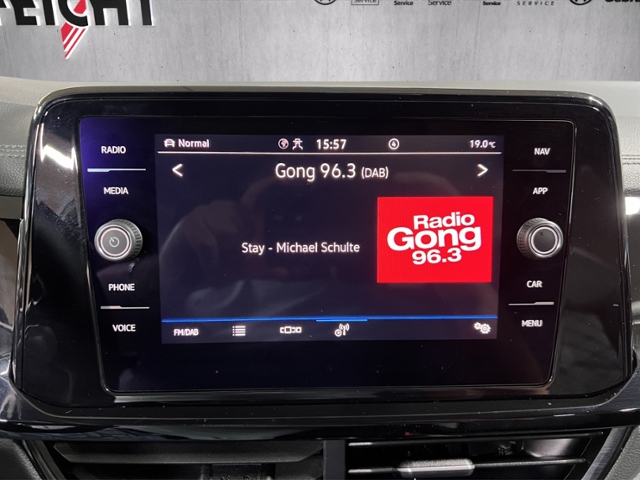 Telefonschnittstelle; 2 USB-C-Schnittstellen vorn, 2 USB-C-Ladebuchsen an der Mittelkonsole hinten; Ladeleistung bis zu 45 W; Radio; Digitaler Radioempfang DAB+; Touch Screen; App-Connect Wireless für Apple CarPlay und Android Auto; Navigationsvorbereitung; Musikstreaming integriert; Vorbereitet für spätere Freischaltung: Navigationsfunktion 'Discover Media' inkl. 'Streaming & Internet'