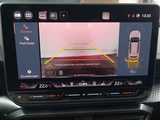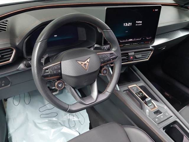 Connectivity-Box; Extern, USB Typ-C Datenbuchse(n) und Ladebuchse(n); USB-Schnittstelle vorn (2-fach, Typ C); Full Link (MirrorLink, Apple CarPlay und Android Auto); Premium-Soundsystempaket 'Immersive by Sennheiser' für Interieur 1 (Standard- Sportsitze); Sprachsteuerung; digitaler Radioempfang; Touch Screen; Mobile Online Dienste Cupra Connect; Induktionsladen für Smartphones; Musikstreaming integriert